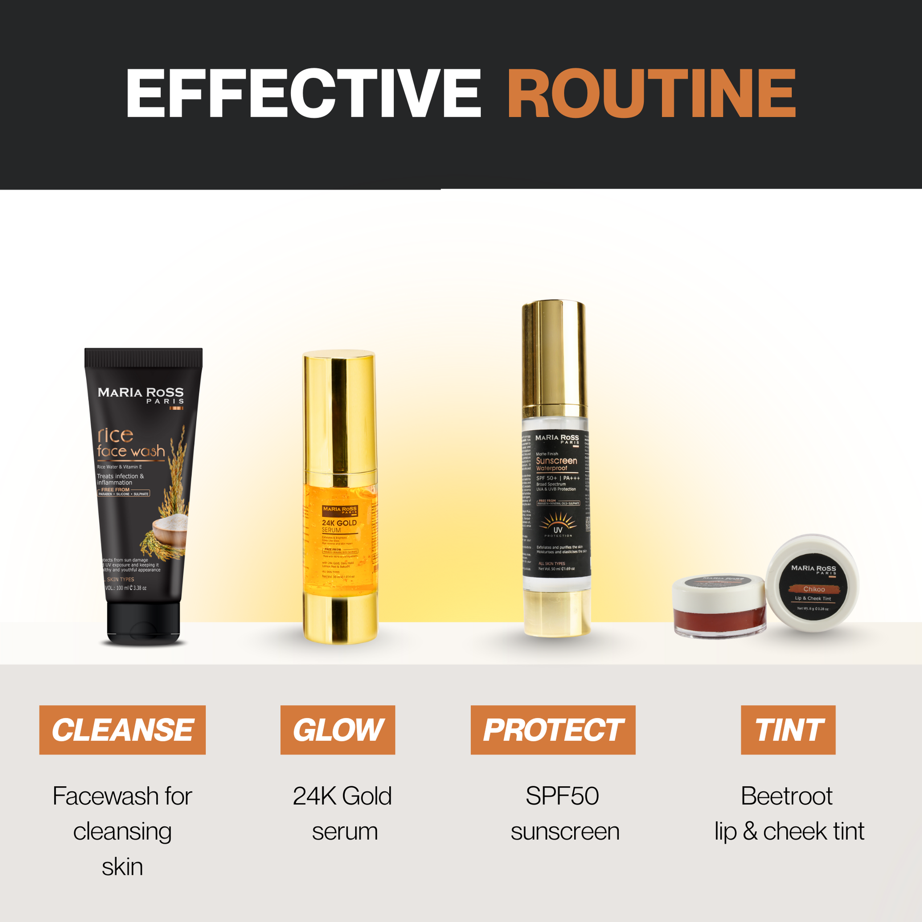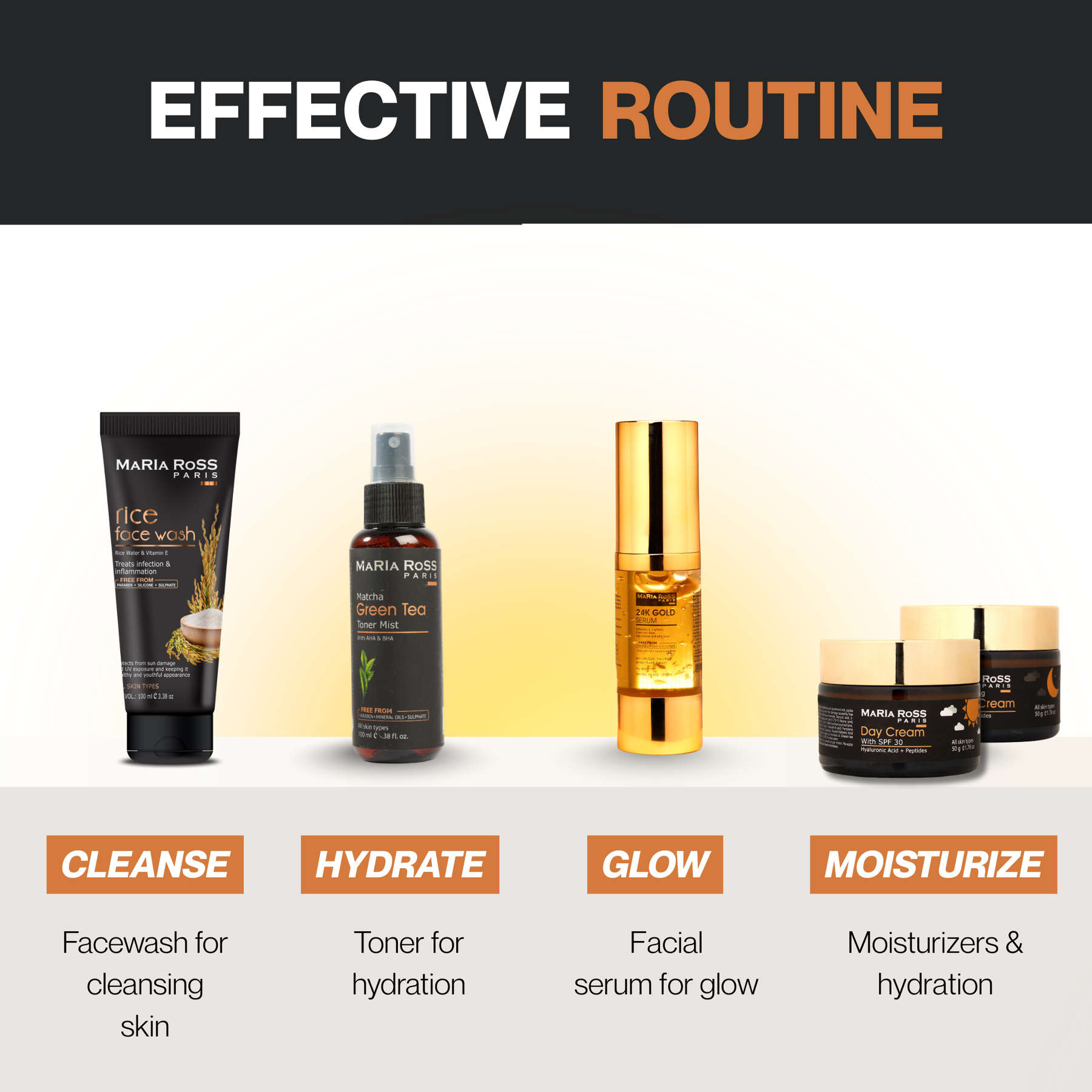 Mariaross is "Clean Compatible". Not just free of harmful and toxic chemicals but uses only those ingredients that either enhance the health of our hair & skin or support the effectiveness of formulations.